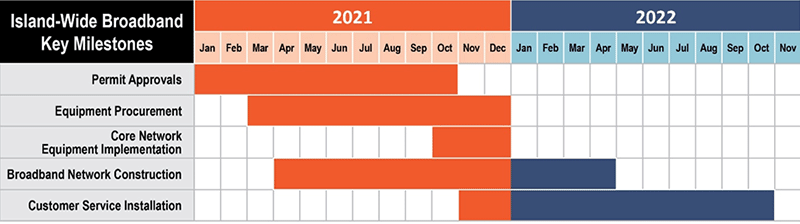 Permit approvals from environmental authorities, the State Department of Transportation, and Verizon are ongoing. Once permitting is in place, Sertex will begin the process of aerial and underground fiber construction. The Town and Sertex anticipate that customer installations could begin as early as December and expect them to continue through the spring and summer months of 2022.